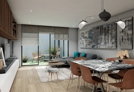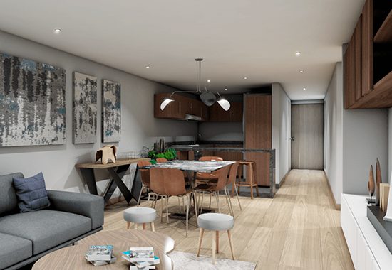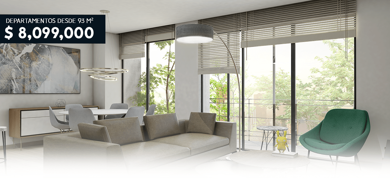 Un lugar envidiable, atractivos espacios con un concepto de vida integral, el diseño de los departamentos contiene materiales naturales, lo que le da un toque único.