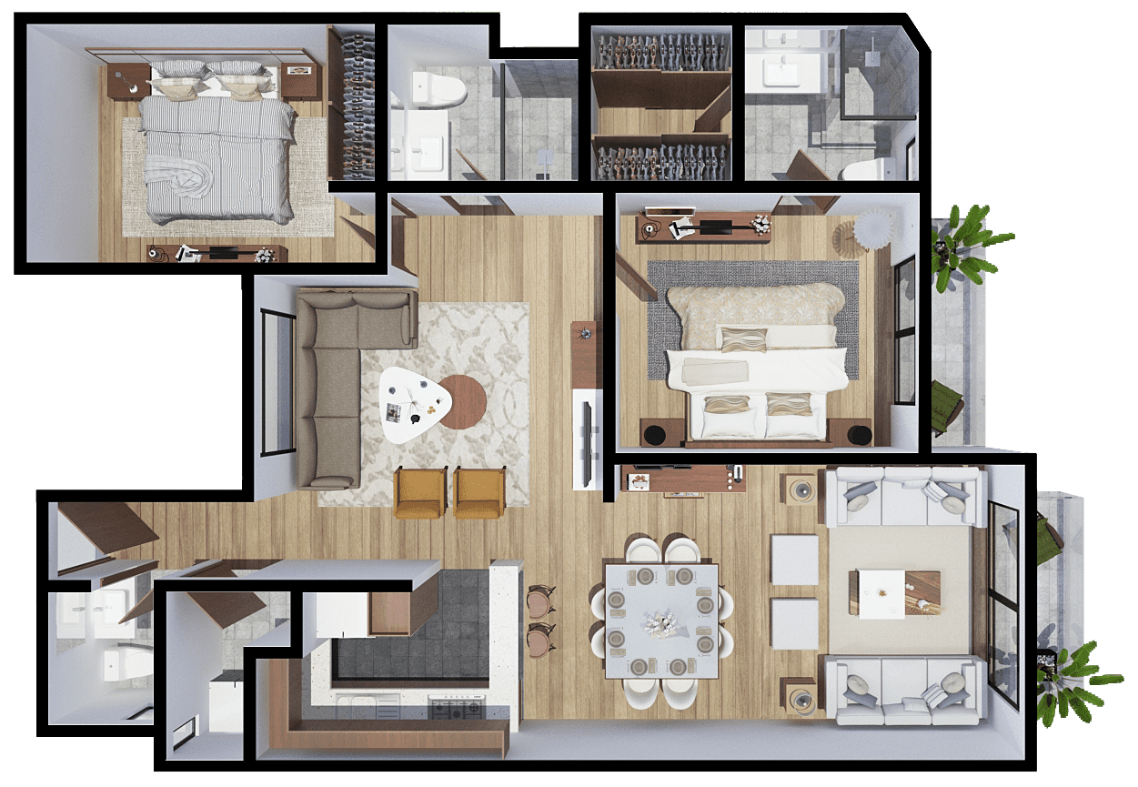 2 Recamáras 2 Baños Sala Comedor